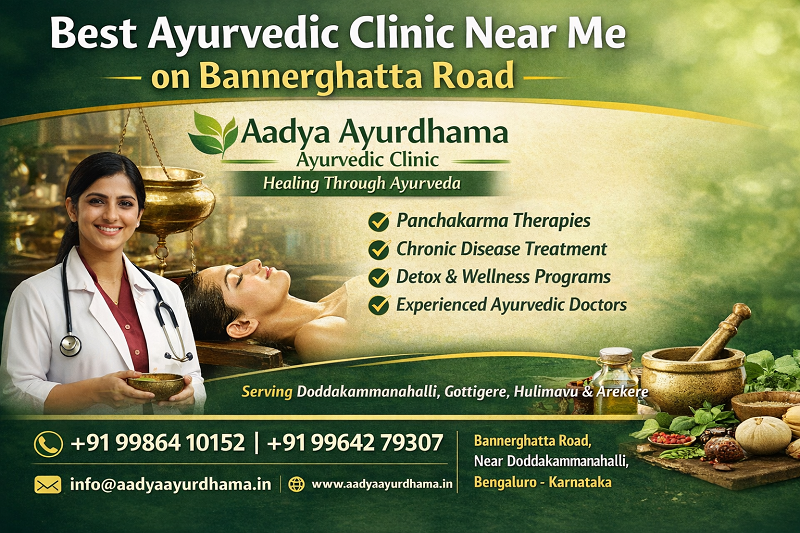 Aadya Ayurdhama Ayurvedic Clinic is located near Bannerghatta Road, Doddakammanahalli, Gottigere, Hulimavu, and Arekere, providing authentic Ayurvedic treatments, massage therapy, and natural pain relief solutions in Bengaluru.